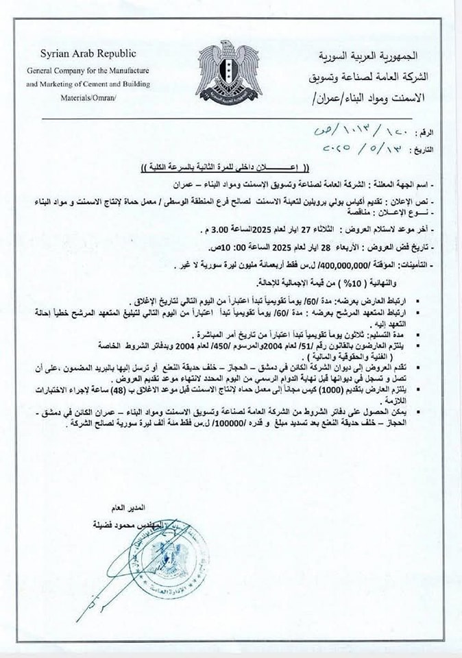 Advertisements and tenders